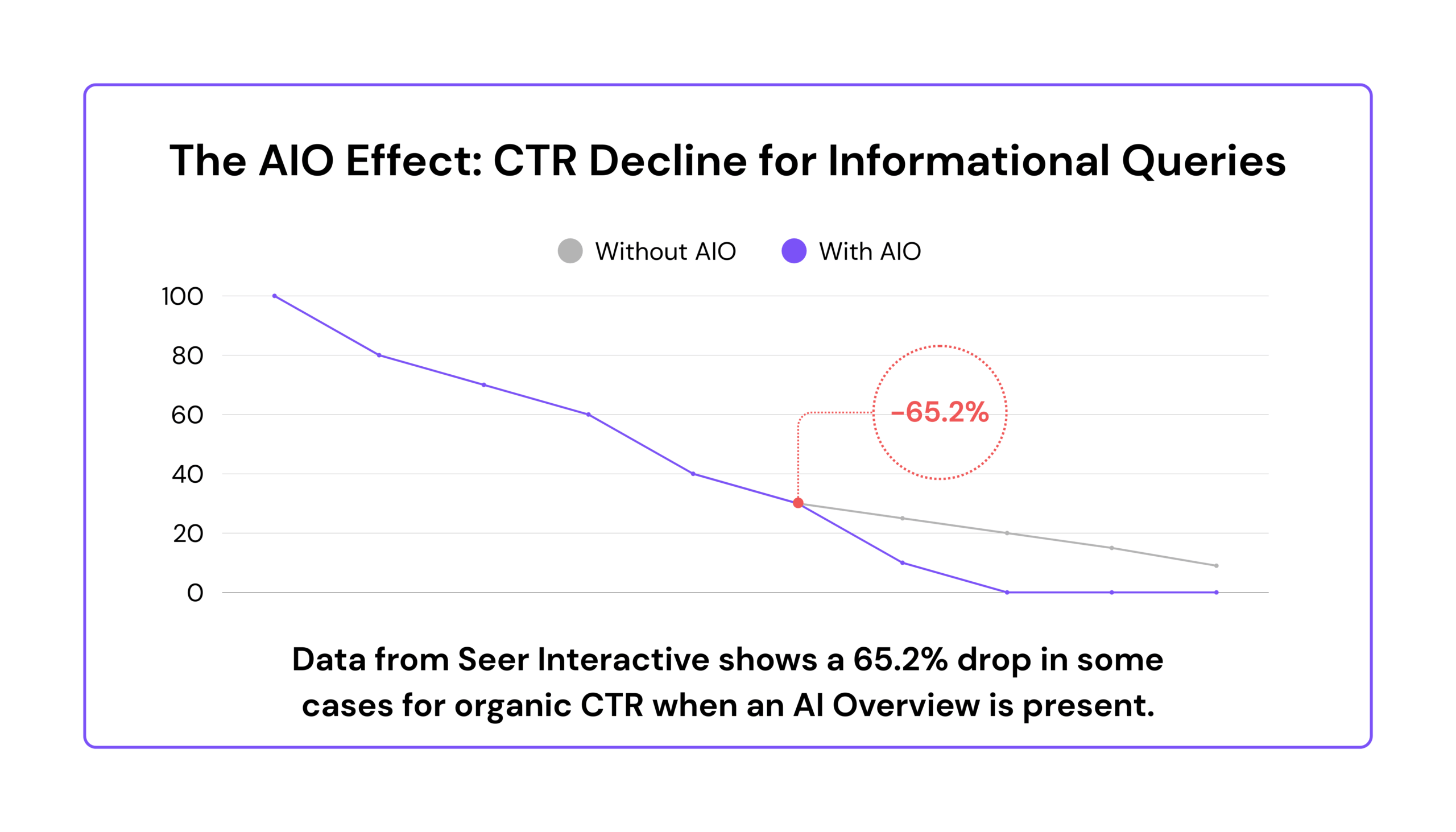 While the threat from third-party LLMs is overstated, a more tangible threat has emerged from within Google itself: AI Overviews (AIOs). These AI-generated summaries, which appear at the top of the search results page, are having a measurable impact on click-through rates (CTR).