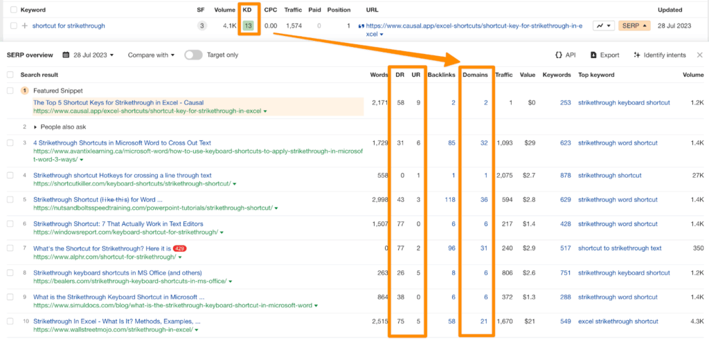 All traditional measures of Keyword Difficulty bias towards the quantity of referring domains to the individual pages’ ranking.