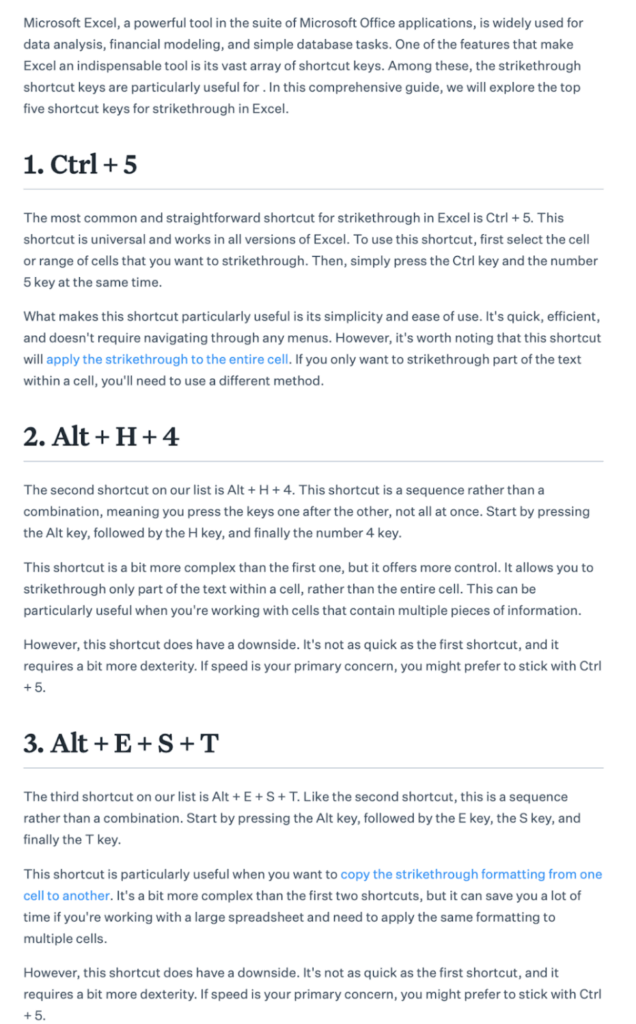 The “shortcut to strikethrough” query was (at one point) the top traffic driver for this site.