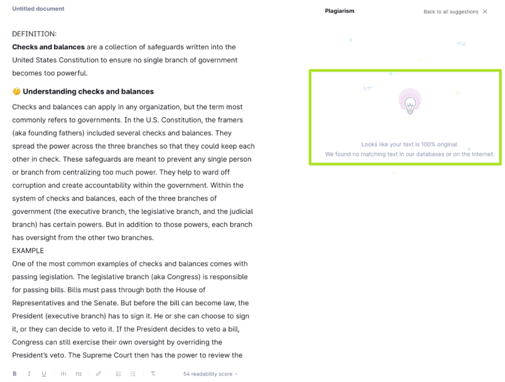 How should Grammarly look when you check for plagiarism? Like this – clean as a whistle.