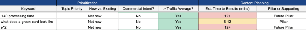 You can and should do this sort of analysis before selecting a keyword or topic or page to write, because it has a direct bearing on your “time to ranking.”